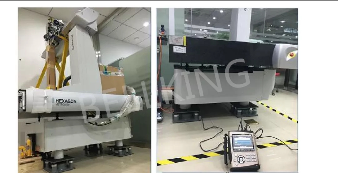 根據(jù)數(shù)據(jù)值的對比,我們將絕大部分的低頻振動在我們的減振裝置內(nèi)部衰減掉了。傳遞到三坐標(biāo) 上的振動,不足以影響三坐標(biāo) um 級別的精度。在后續(xù)的測量機運行之后,也不曾出現(xiàn)過正常操作而 精度不達標(biāo)的情況。