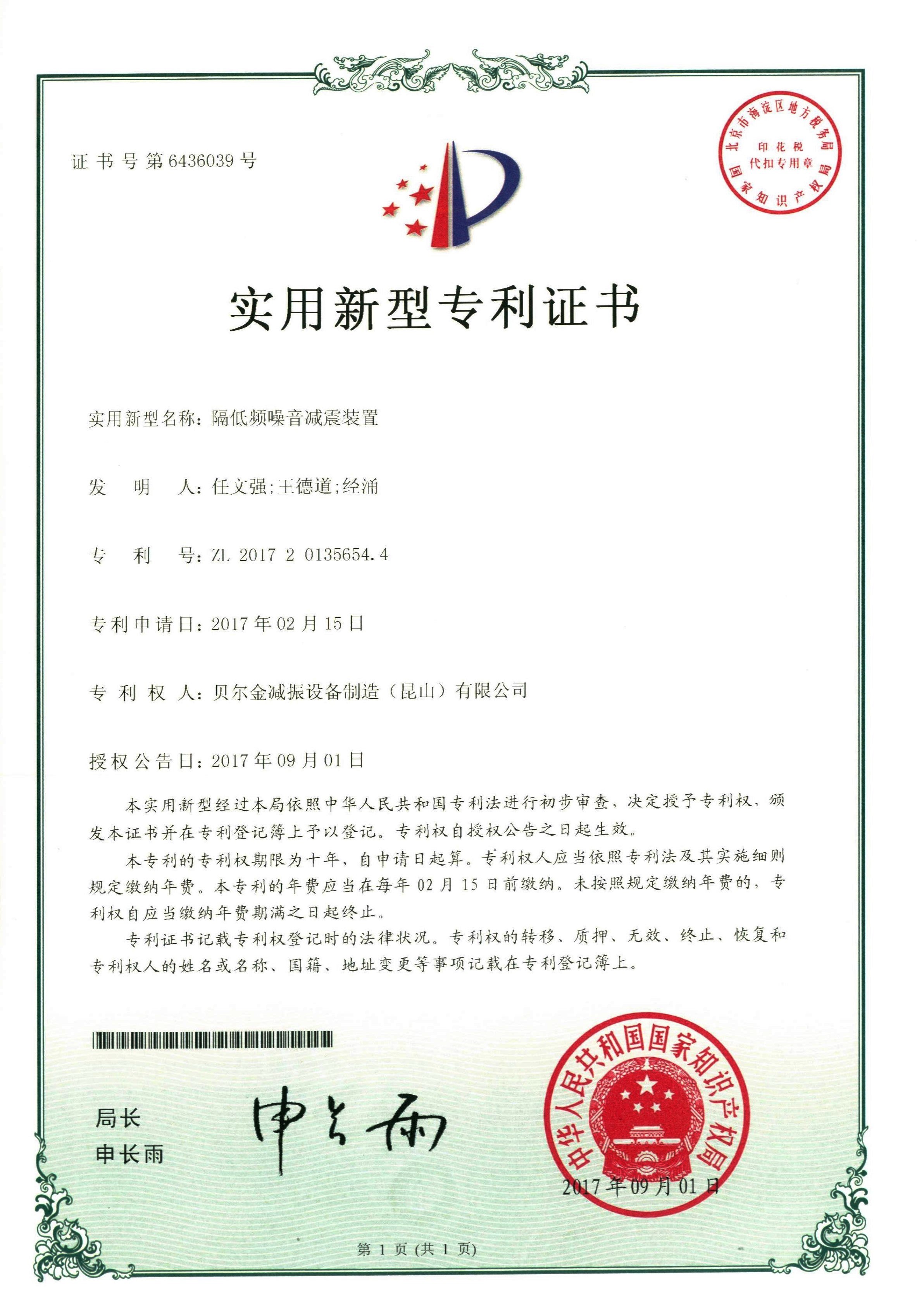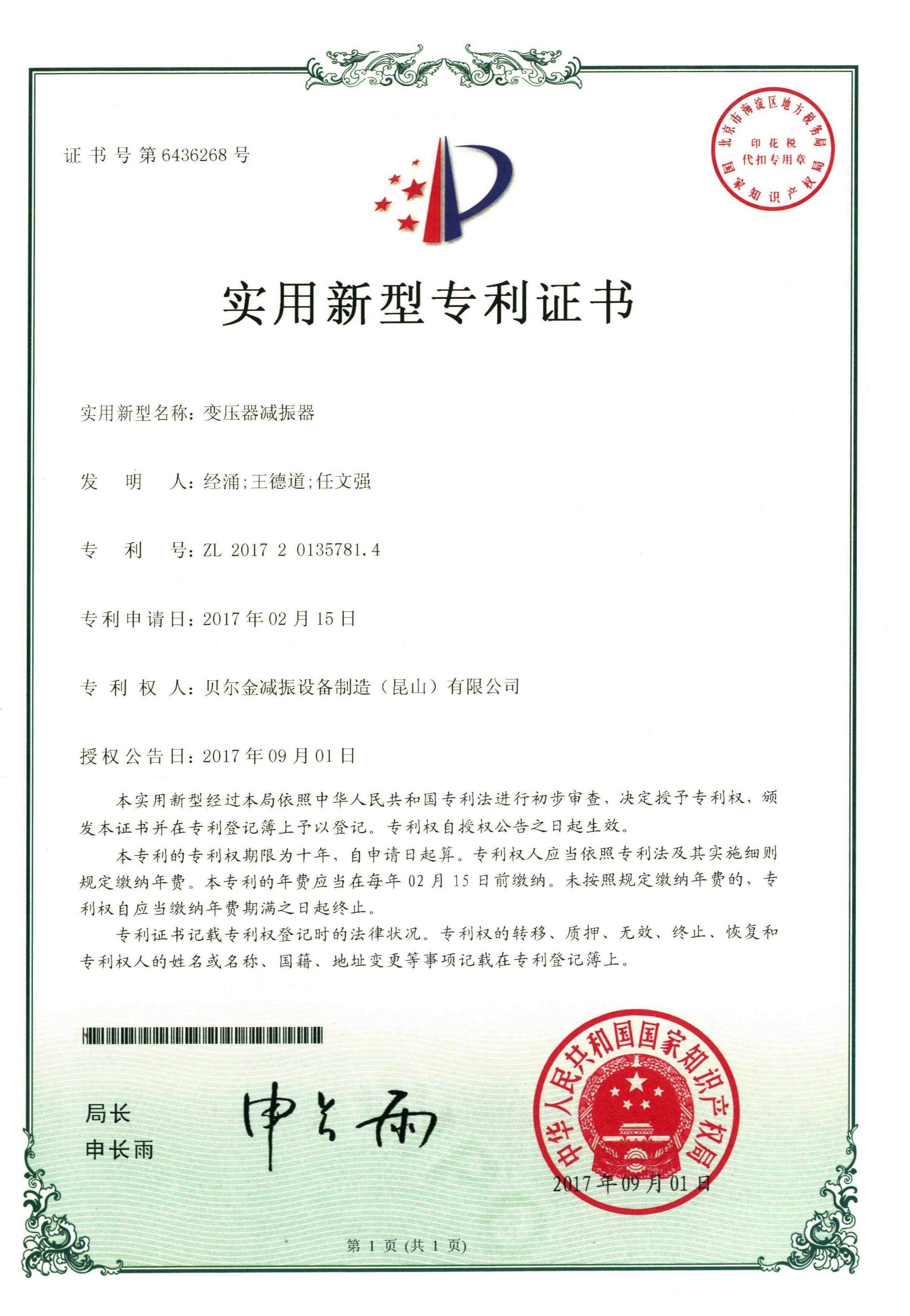 變壓器減振器專利證書…